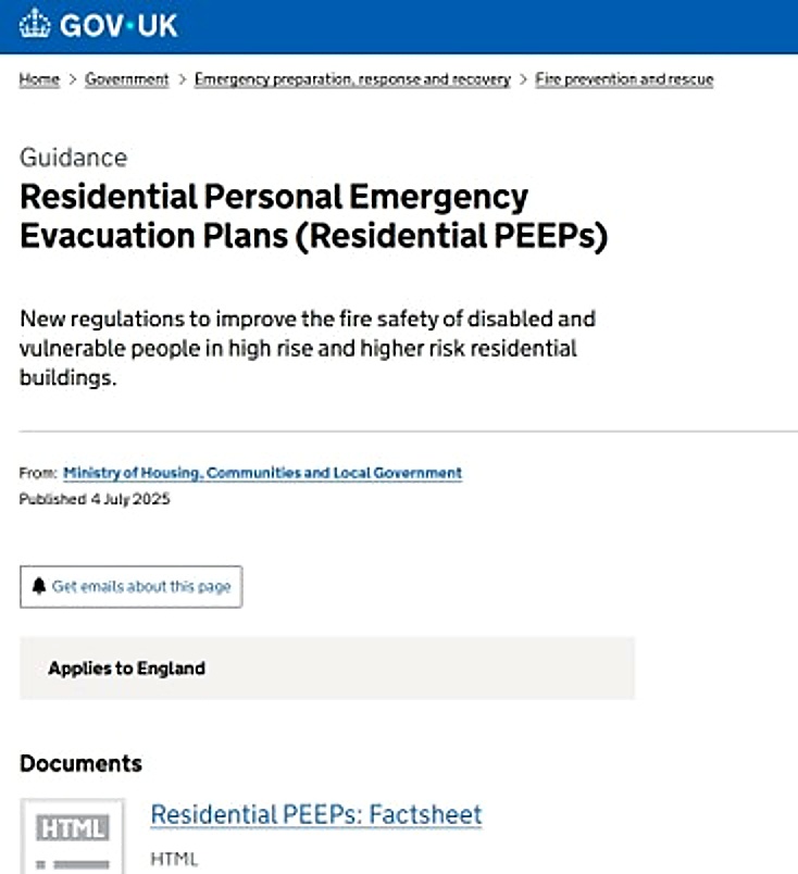 The Fire Safety (Residential Evacuation Plans) (England) Regulations 2025 aim to improve the fire safety and evacuation of residents who would have difficulties evacuating a building by themselves in the event of a fire.